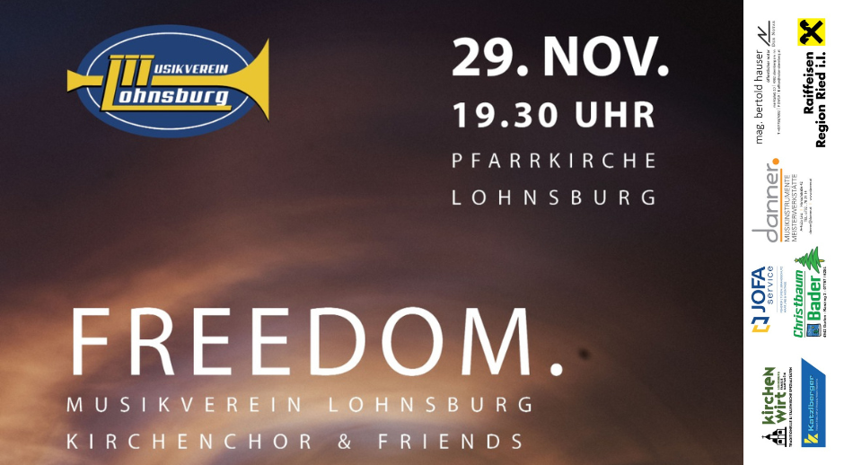 FREEDOM – Herzliche Einladung zum Konzert Am Samstag, den 29. November um 19:30 lädt der Musikverein unter der Leitung von Sebastian Posch-Haginger zum Konzert in die Pfarrkirche Lohnsburg. Mehr lesen 20. Oktober 2025